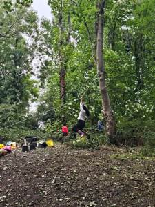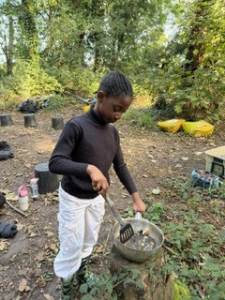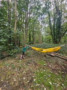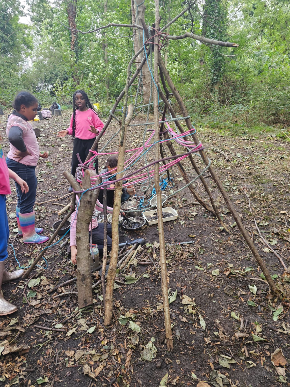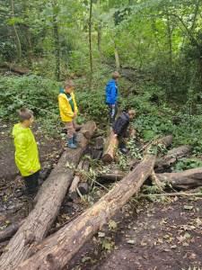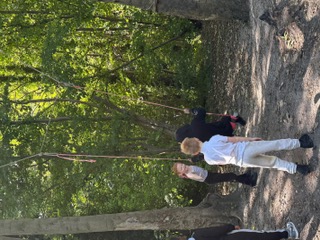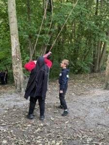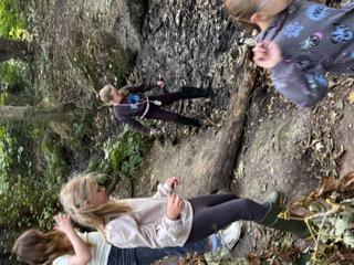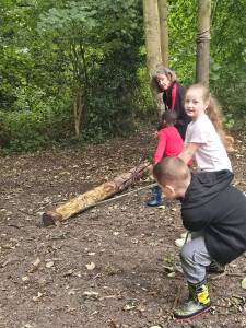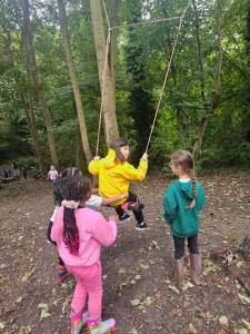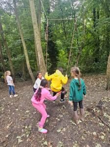 Every Thursday one of the Year 4 classes visits Ghost Woods to experience Forest School. We walk there and get the chance to explore and have the freedom to choose our activities. The swing is a popular activity as is building a mud kitchen and making a range of items out of wood.